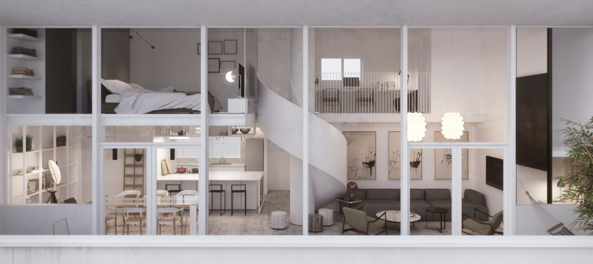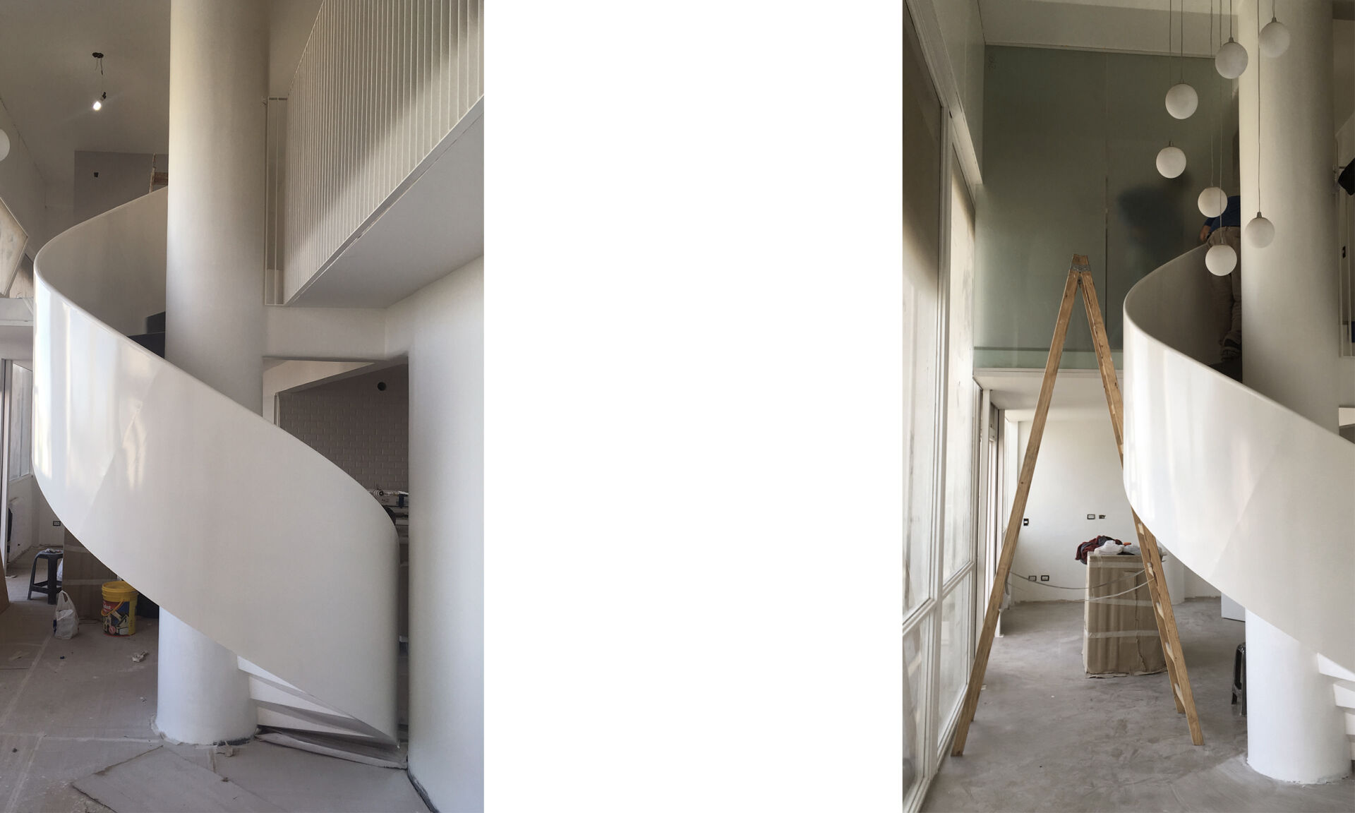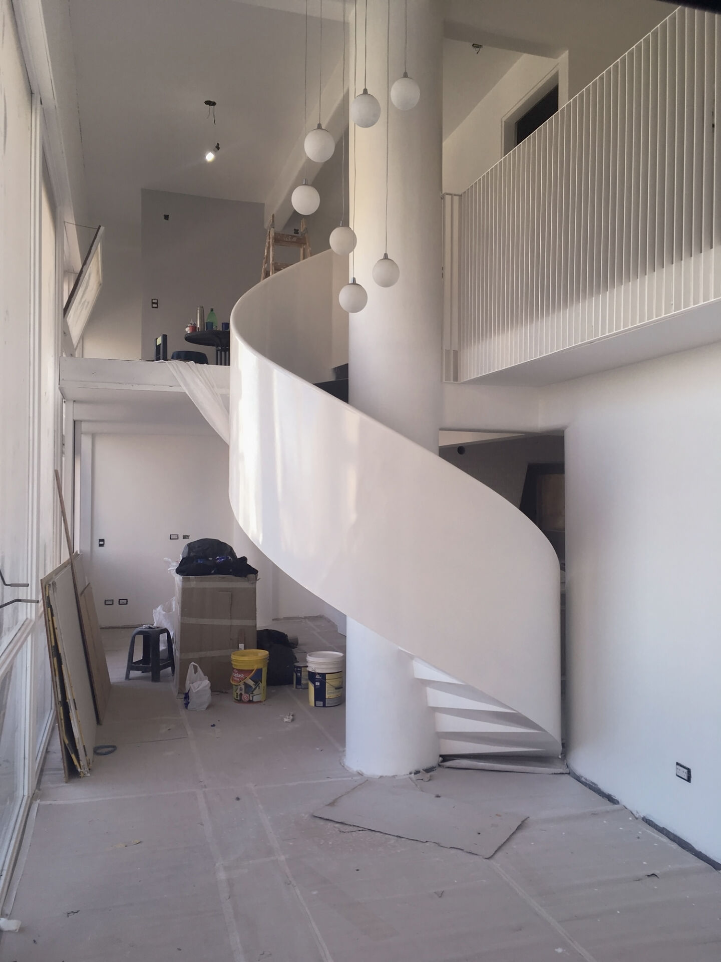 Una escalera central que divide el departamento en 4